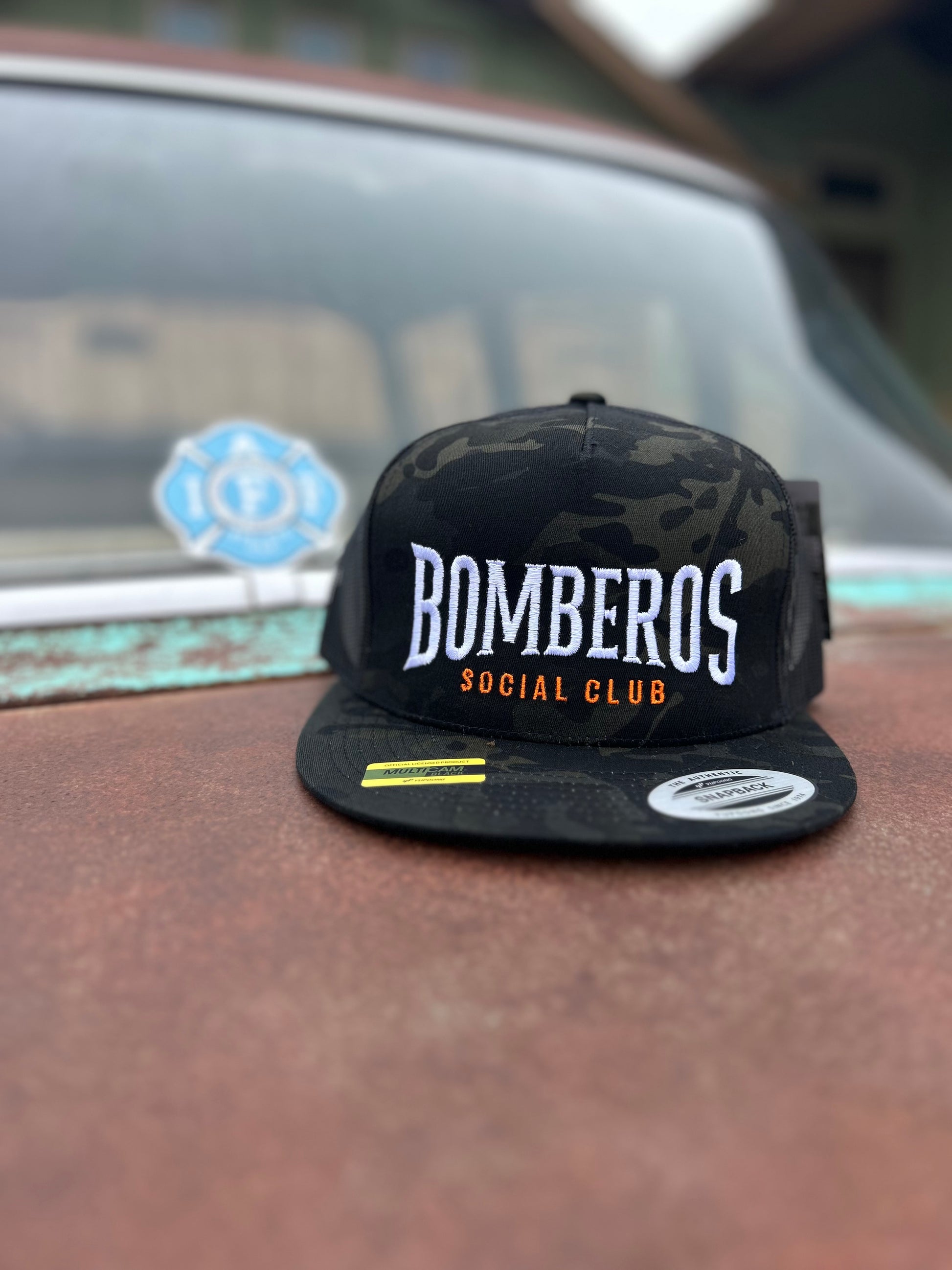 Yupoong Classic Snapback Black Camo w/ White & Orange Lettering